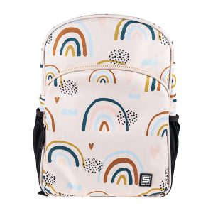 Różowy plecak szkolny w tęcze