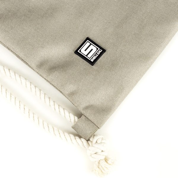 Ściągany grubym bawełnianym sznurkiem.