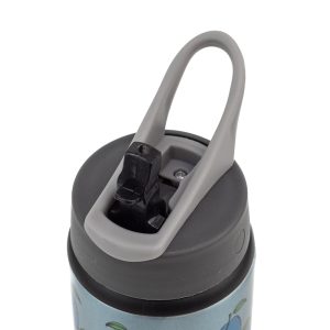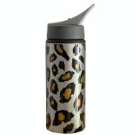 Aluminiowy bidon na wodę lub inny napój w panterkę. Dziecięcy bidon ma pojemność 650 ml i doskonale mieści się nawet w kieszeni plecaka przedszkolnego. Bidon posiada pojedynczą ściankę, składany ustnik i słomkę oraz wygodny uchwyt do trzymania. Słomka w butelce jest wyciągana, dzięki czemu bez problemu można ją dokładnie umyć. Ustnik jest plastikowy. Bidon ma metaliczny lekko mieniący się połysk, przez co jest bardzo oryginalny. Nadruk wykonano metodą sublimacji, dzięki czemu jest niewyczuwalny w dotyku i bardzo trwały.