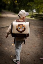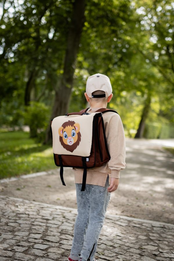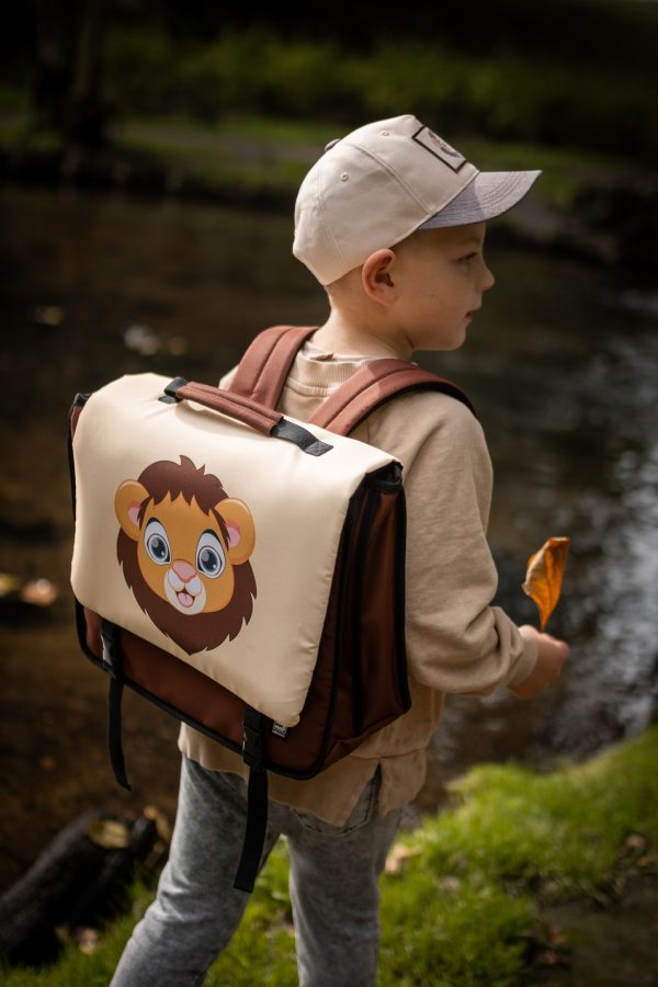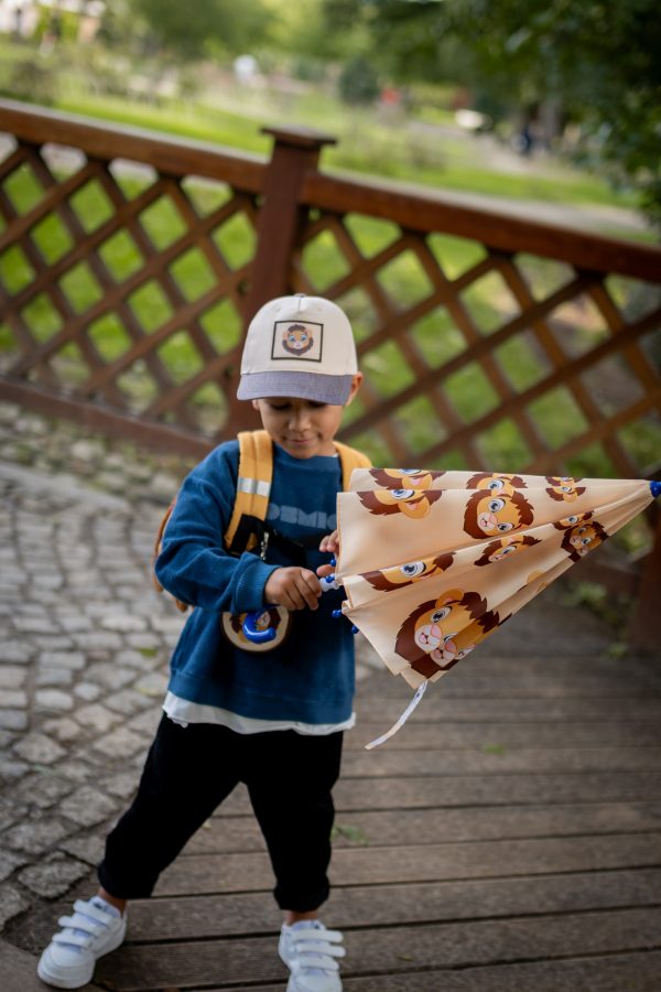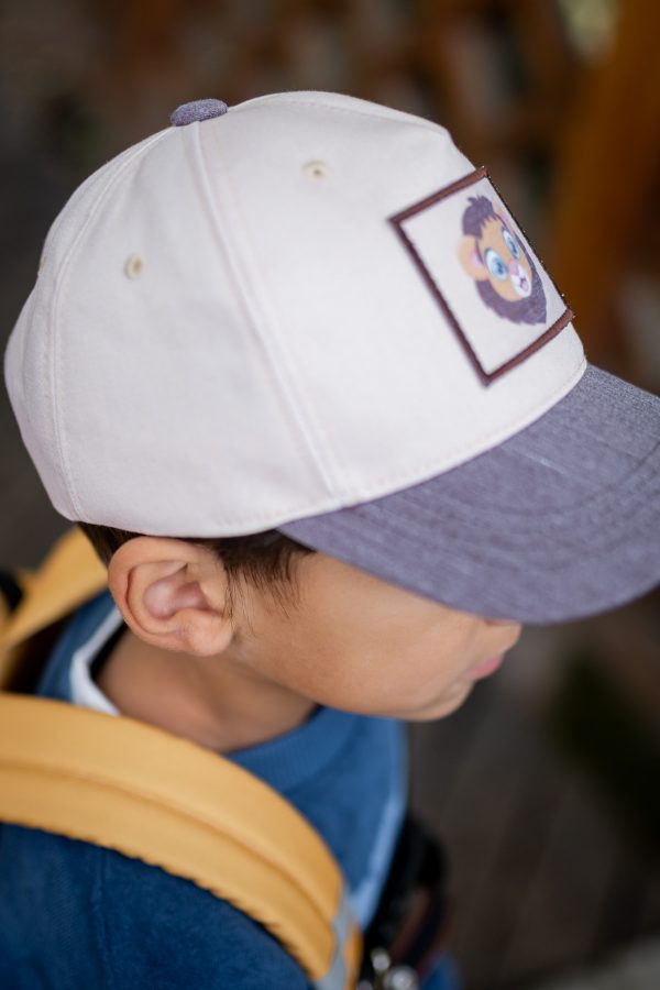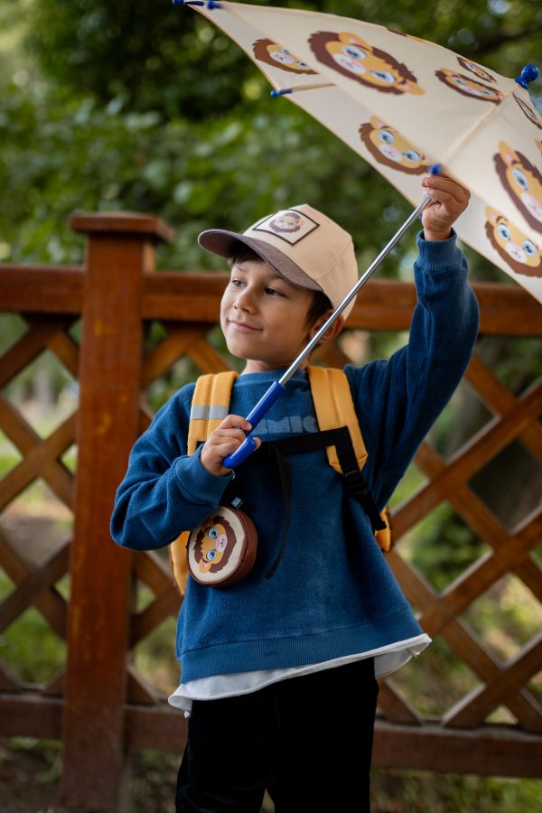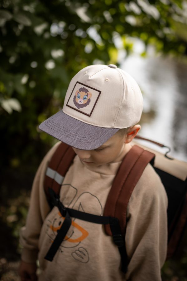 Dziecięca czapka z daszkiem i emblematem z lwem.