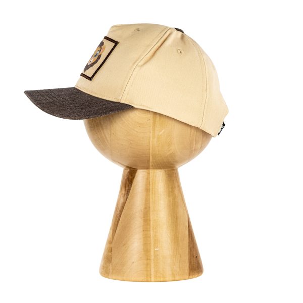 Wnętrze czapki wyposażono w taśmy dobrane pod kolor, co nie tylko dodaje estetyki, ale również zapobiega szybkiemu zabrudzeniu się. Żółto miodową barwę czapki ozdobiono emblematem z lwem i daszkiem w brązowym odcieniu. Czyni to ją idealnym dodatkiem do garderoby dla miłośników króla dżungli.