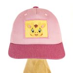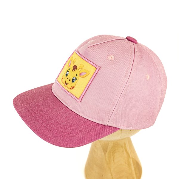 Różowa czapka baseball’owa z naszytym emblematem z żyrafą.