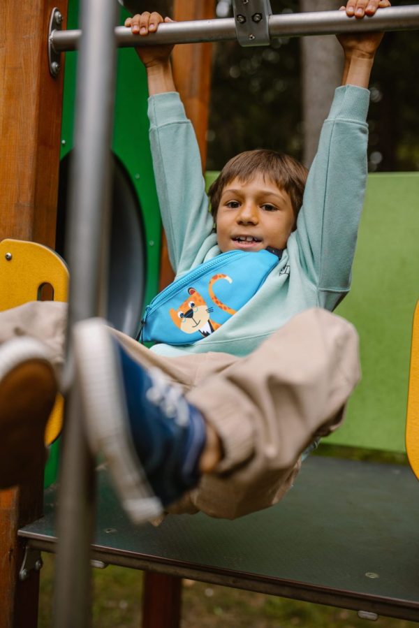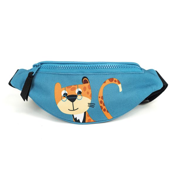 Grafika przedstawia animowanego tygrysa na niebieskim tle. Saszetka ze względu na uniwersalność grafiki nadaje się zarówno dla dziewczynek, jak i chłopców.
