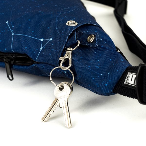 W mniejszej kieszeni zapinanej na zatrzask znajduje się smycz z karabińczykiem, do której z łatwością przymocujemy klucze, by nie musieć ich szukać we wnętrzu torby.