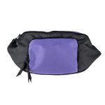 Dużą czarną nerkę uszyto z wodoodpornego materiału jakości premium. Saszetka posiada 3 komory — większą główną i mniejszą fioletową na zewnątrz oraz dodatkową małą na wewnątrz. Obie komory główne zapinane są na zamki kostkowe w kolorze czarnym. Mniejsza wewnętrzna kieszonka zapinana na delikatniejszy zamek żyłkowy. Wewnątrz solidna podszewka. Fason bardzo wygodny i nowoczesny. Ze względu na rozmiar nerki może być to nerka dla mamy lub nerka dla taty. W zależności od upodobań można ją nosić w pasie, przez ramię — z przodu i z tyłu.