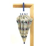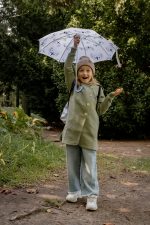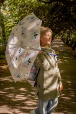 Parasolka dziecięca to pomysł, który zrealizowano tradycyjnie przez nasze utalentowane krawcowe. Produkt uszyto w dużej mierze ręcznie. Sam materiał uszyto maszynowo, ale już mocowanie do stelaża wykonujemy ręcznie — tradycyjnie igłą i nitką, do czego wkładamy bardzo dużo serca, jak i w pozostałe produkty.