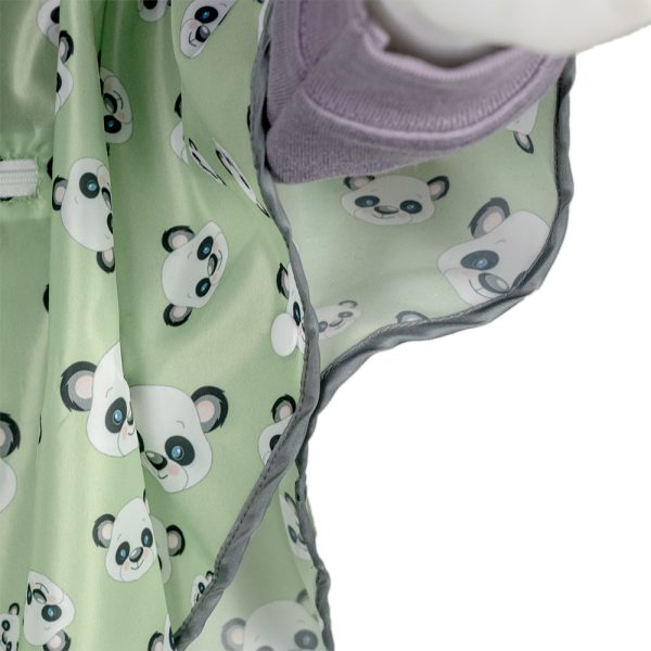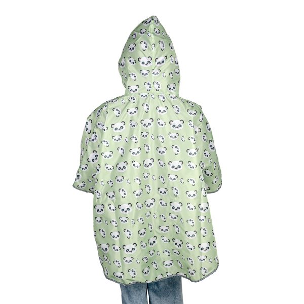 Zielony płaszcz z motywem w pandy jest prawdziwym wizualnym uderzeniem, które zachwyci każde dziecko. Z przodu znajduje się kieszonka na zamek, która może służyć jako etui dla peleryny, ułatwiając przechowywanie poncza, gdy deszcz ustanie.