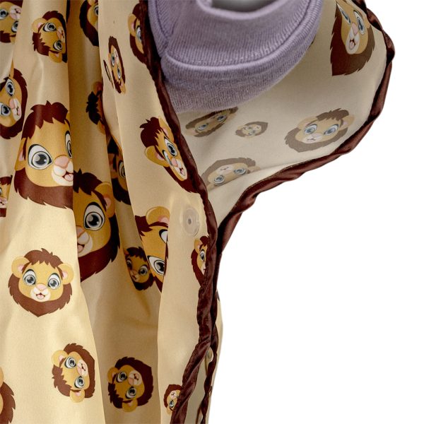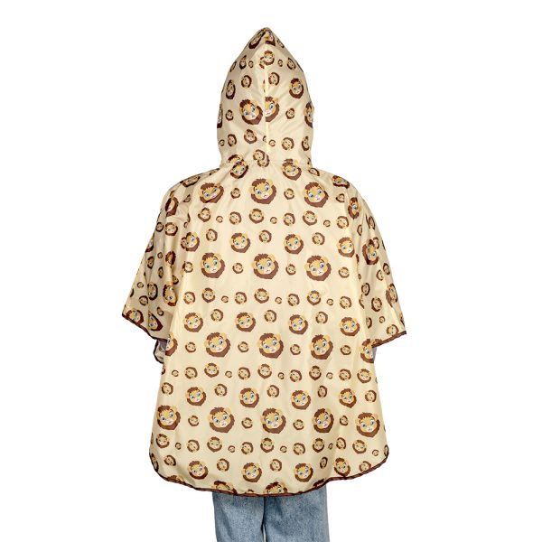 Żółty płaszcz z motywem w lwy jest prawdziwym wizualnym uderzeniem, które zachwyci każde dziecko. Z przodu znajduje się kieszonka na zamek, która może służyć jako etui dla peleryny, ułatwiając przechowywanie poncza, gdy deszcz ustanie.