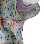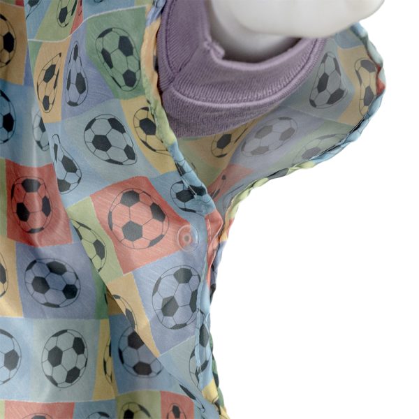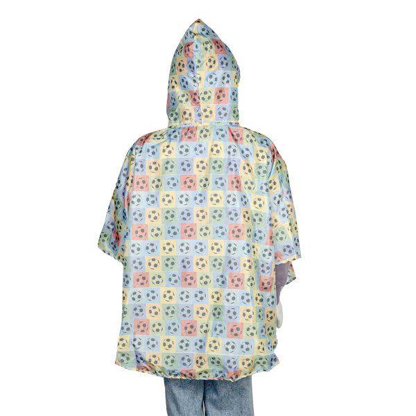 Ponczo wykonane jest z wodoodpornego ortalionu, co gwarantuje, że Twoje dziecko pozostanie suche i zadowolone. Piłki futbolowe na tle kolorowych kształtów dodają ponczu charakterystycznego, sportowego wyglądu.