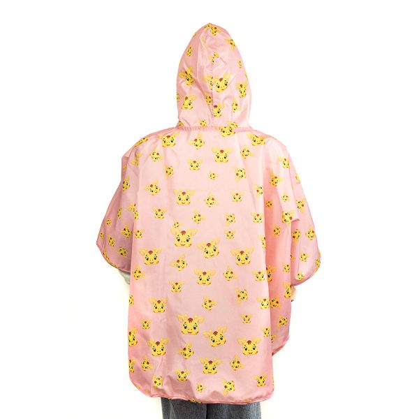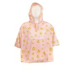 Różowy płaszcz z motywem w żyrafy jest prawdziwym wizualnym uderzeniem, które zachwyci każde dziecko. Z przodu znajduje się kieszonka na zamek, która może służyć jako etui dla peleryny, ułatwiając przechowywanie poncza, gdy deszcz ustanie.