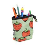 Zielony piórnik w czerwone truskawki to doskonały produkt dla chłopca i dla dziewczynki.