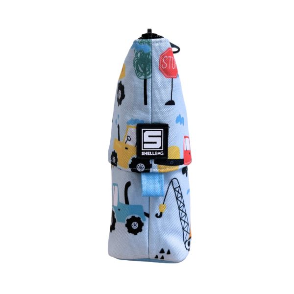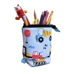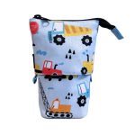 Dziecięcy piórnik szkolny tuba to innowacyjne rozwiązanie ułatwiające korzystanie z akcesoriów szkolnych. Pionowy piórnik posiada ruchomy górny element, który można opuścić w dół, dzięki czemu widoczna jest cała jego zawartość. Błękitno pastelowy piórnik z pojazdami budowlanymi sprawdzi się dla chłopca, który interesuje się sprzętem budowlanym i wszelkimi pojazdami. Piórnik uszyto z wysokiej jakości wodoodpornego materiału. Dziecięcy piórnik zapina się na zamek żyłkowy. Wnętrze wyściełane czarną podszewką usztywniającą całość. Dno wzmocnione plastikowym elementem zapewniającym stabilność piórnika. Nadruk wykonano metodą sublimacji, dzięki czemu kolory są wyraziste i trwałe.