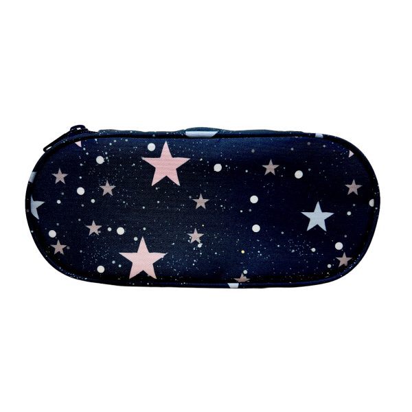 Granatowy kolor piórnika to nie tylko wybór klasyczny, ale i odważny. Dodatkowo różowe i błękitne gwiazdy nadają mu niepowtarzalny, świeży wygląd, podkreślając indywidualność każdego użytkownika. Zamykany solidnym zamkiem, nasz piórnik emanuje stylem i elegancją.