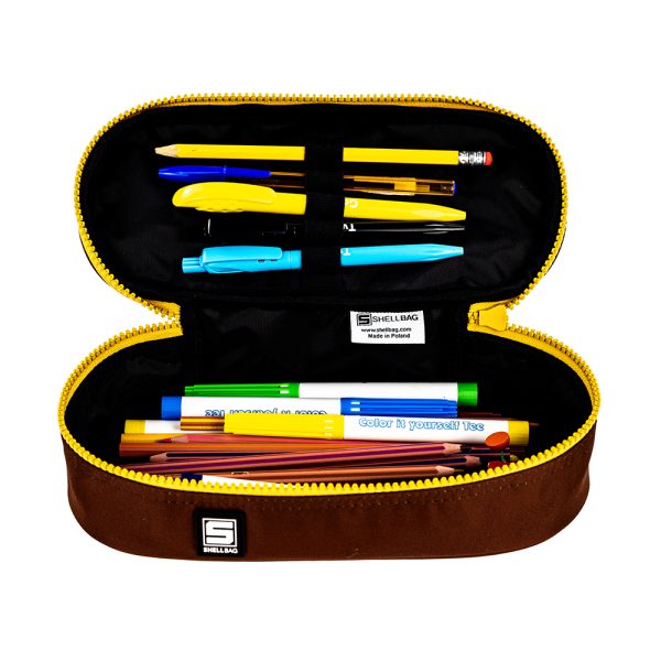 Żółty kolor piórnika to nie tylko wybór klasyczny, ale i odważny. Dodatkowo, brązowe wykończenia nadają mu niepowtarzalny, świeży wygląd, podkreślając indywidualność każdego użytkownika. Zamykany brązowym zamkiem, nasz piórnik emanuje stylem i elegancją.