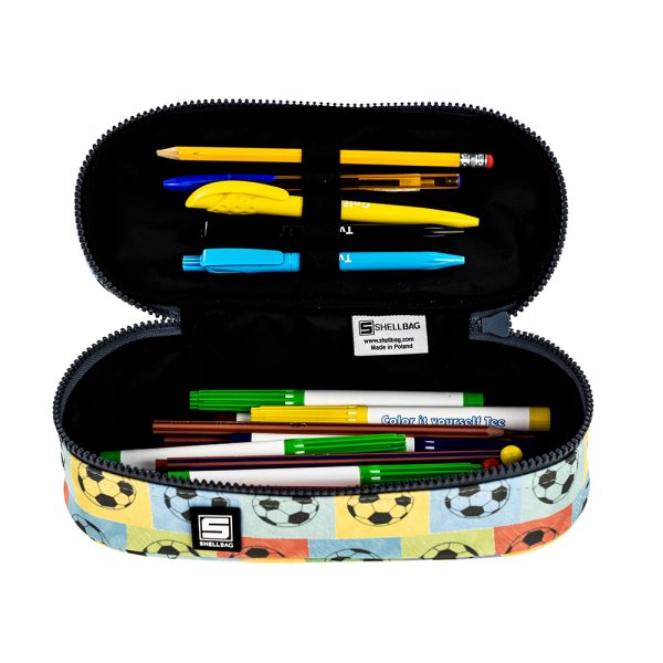 Wielokolorowy Piórnik w piłki futbolowe to nie tylko praktyczny gadżet, ale także modny dodatek do szkolnej kolekcji Twojego dziecka.
