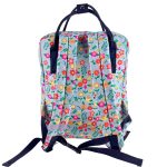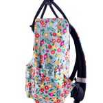 Plecak młodzieżowy o przestronnej komorze głównej zapinanej na podwójny zamek kostkowy. Uszyty z tkaniny premium w kwiecistym kolorowym princie. Wewnątrz znajduje się czarna podszewka i duża wsuwana kieszeń w kolorze plecaka np. na mniejszy laptop. Plecak wyposażono w dwie boczne głębokie kieszenie np. na bidon. Na froncie znajduje się pojemna kieszeń zapinana na chowany zamek. Plecak posiada dwa bawełniane uchwyty, które po spięciu pozwalają nosić plecak jako torbę. Szelki są regulowanej długości wzbogacone paskiem mostkowym, który zapewnia stabilność plecaka na ramionach – od wewnątrz szelki wykonane są z siatki, aby zapobiec poceniu się. Na szelce naszyto element odblaskowy. Kolory wyraziste i trwałe, nie spierają się. Produkt można prać wg instrukcji na metce. Rozmiar plecaka doskonały zarówno dla dzieci powyżej 5 roku życia, jak i dla dorosłych.