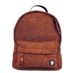 Brązowa tkanina boucle baranka to nie tylko kolor, to doświadczenie dotyku miękkości, które sprawia, że noszenie plecaka staje się prawdziwą przyjemnością. Wykonany z tkaniny z recyklingu.
