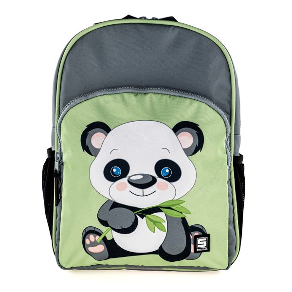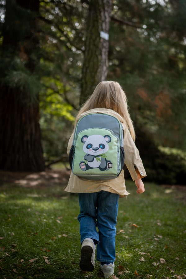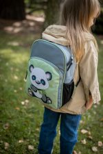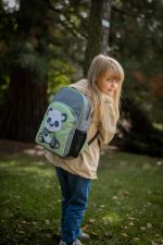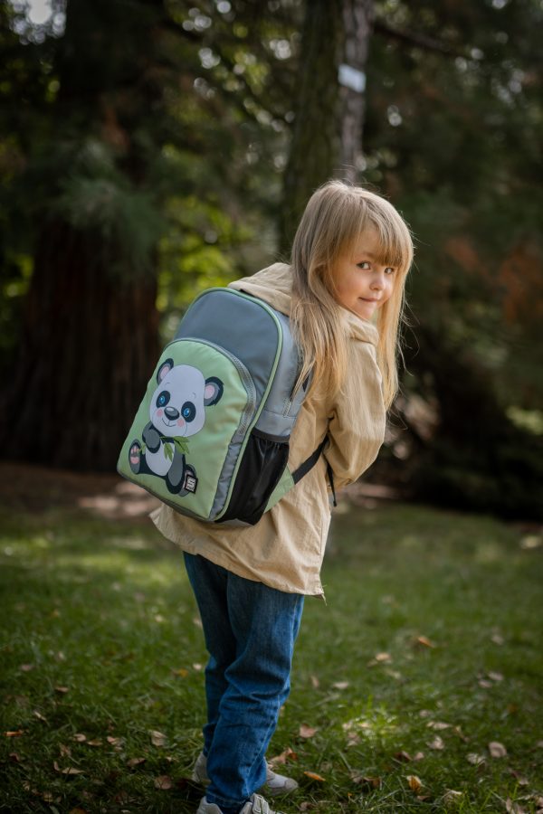 Zielono szary plecak z pandą dodaje uroku i radości każdemu dniu szkolnemu! Idealny dla małych marzycielek.