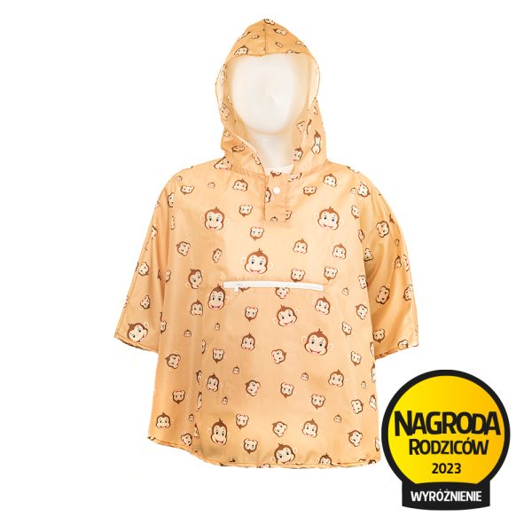 Dziecięce beżowe ponczo przeciwdeszczowe małpka