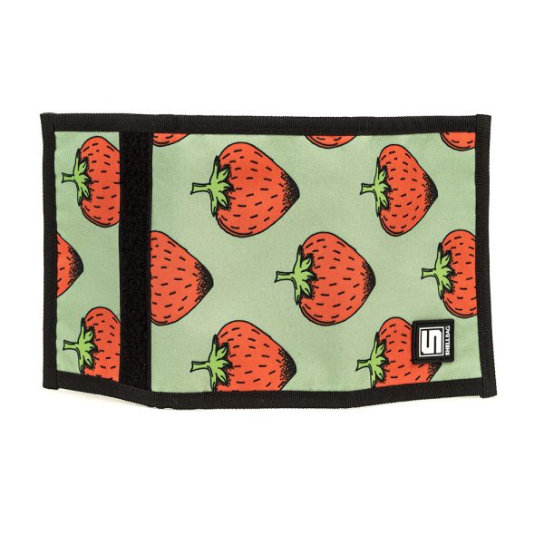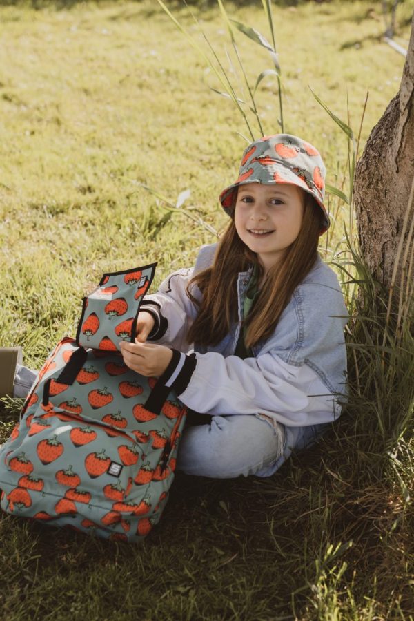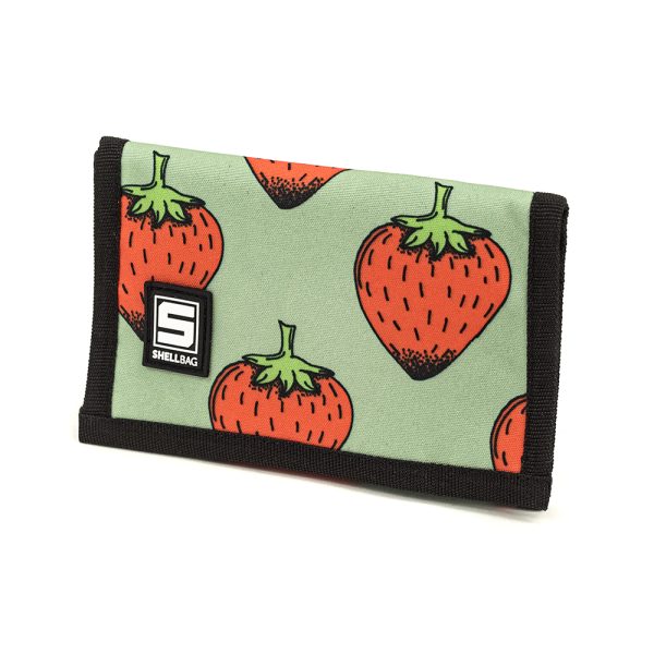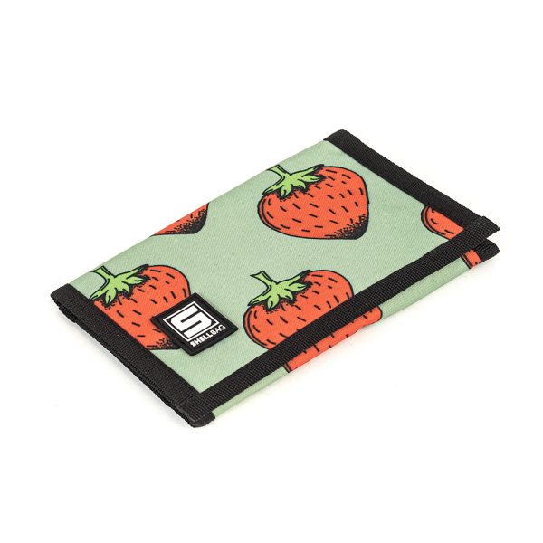 Zielony portfel w czerwone truskawki to doskonałe rozwiązanie dla dzieci i dla mamy.