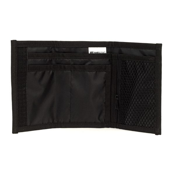 Wewnątrz posiada dużą komorę na banknoty, kieszonkę na monety zapinaną na zamek oraz przegrody na karty bankomatowe.