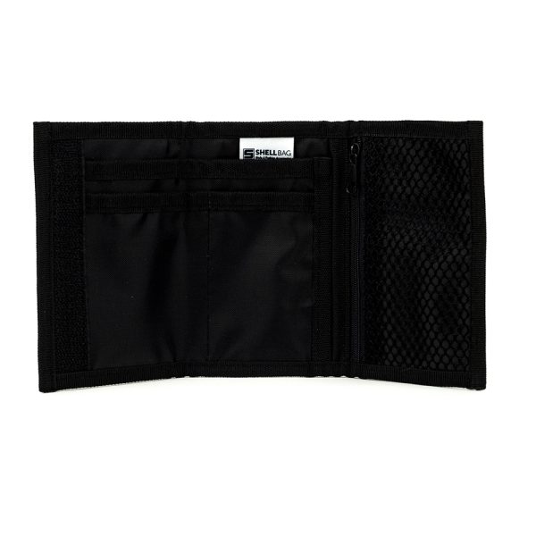 Wewnątrz posiada dużą komorę na banknoty, kieszonkę na monety zapinaną na zamek oraz przegrody na karty bankomatowe.