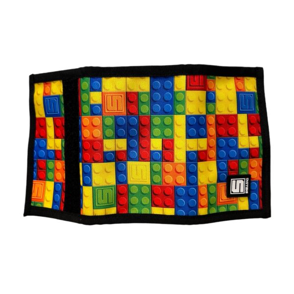 Kolorowy portfel dziecięcy z motywem klocków – idealny dodatek dla młodych fanów konstrukcji!