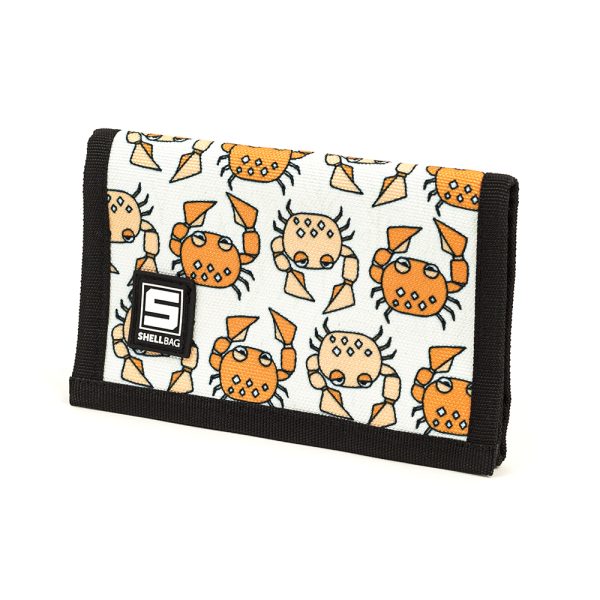 Składany portfel dziecięcy z printem przedstawiąjacym wesołe wędrujące kraby.