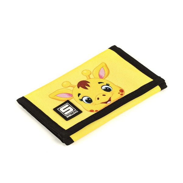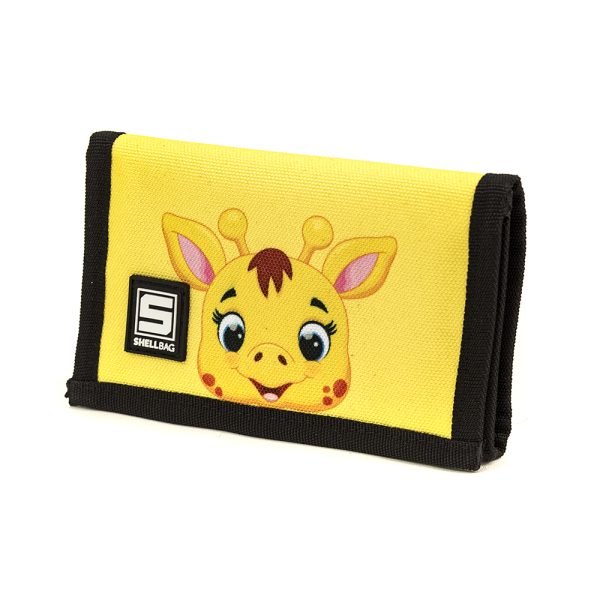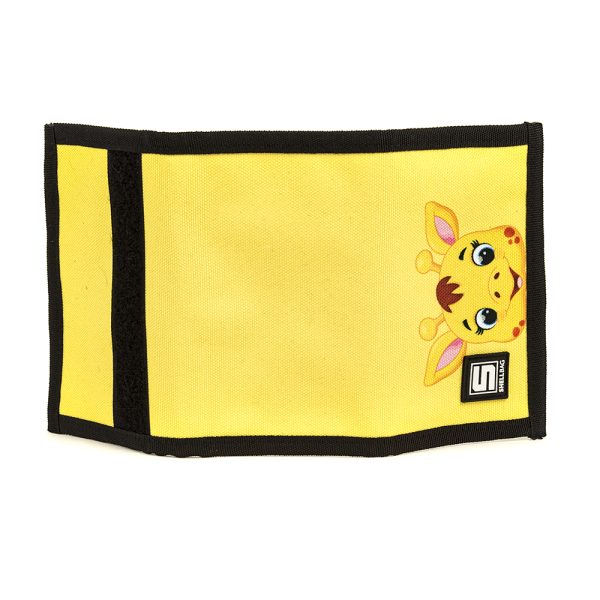 Klasyczny składany dziecięcy portfel z żyrafą. Żółty portfel to doskonałe rozwiązanie dla dziewczynki na co dzień, jak i na wyjazdy. Dziecięcy portfel składa się na 3 części. Całość zapina się na solidny rzep. Wewnątrz duża komora mieszcząca wszystkie nominały banknotów, kieszonki na karty oraz dodatkowa kieszeń na zamek na bilon. Portfel pomieści legitymację szkolną. Portfel uszyty z wysokiej jakości wodoodpornej tkaniny. Dookoła dodatkowo obszyty taśmą wzmacniającą. Nadruk wykonano metodą sublimacji, dzięki czemu kolory są wyraziste i trwałe.