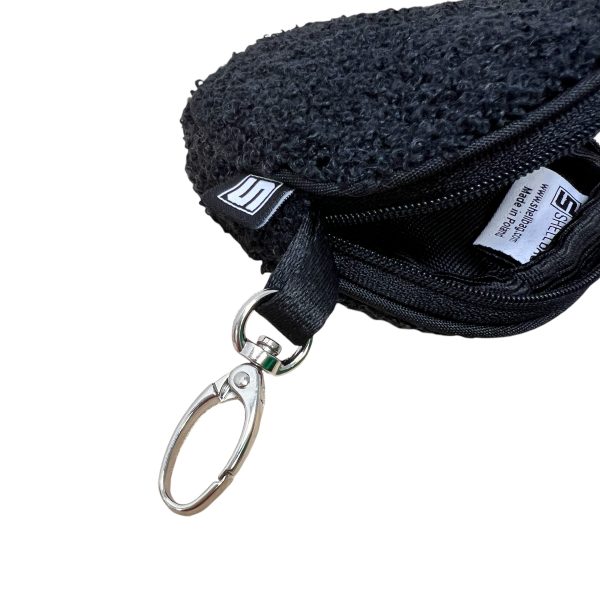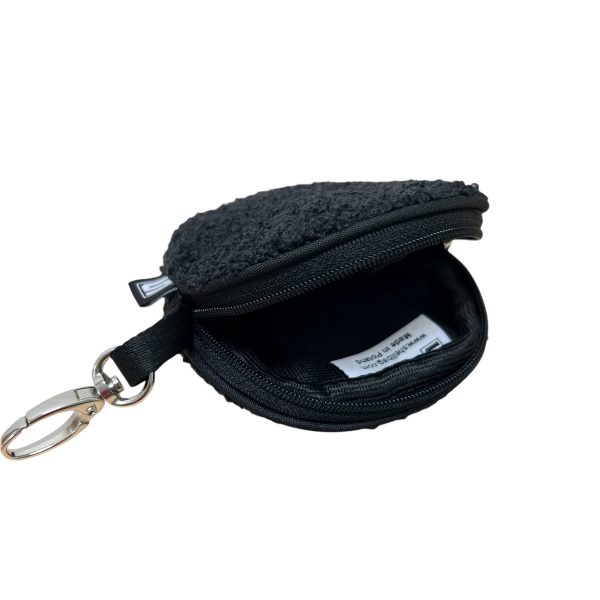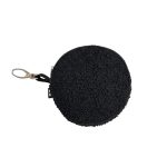 Okrągła portmonetka z brelokiem z tkaniny bouclé w kolorze czarnym