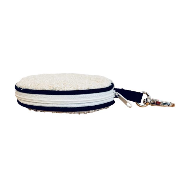 Śmietankowo kremowa tkanina boucle baranka to nie tylko kolor, to doświadczenie dotyku miękkości, które sprawia, że korzystanie z portmonetki staje się prawdziwą przyjemnością. Wykonana z tkaniny z recyklingu.