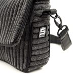 Sztruksowa torebka kopertowa z klapką w kolorze szarym.