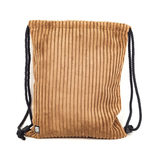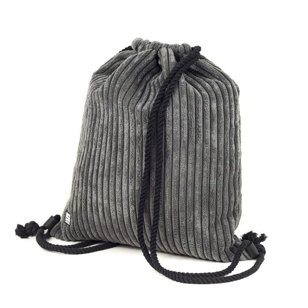 Worek na plecy ściągany grubymi bawełnianymi sznurkami.