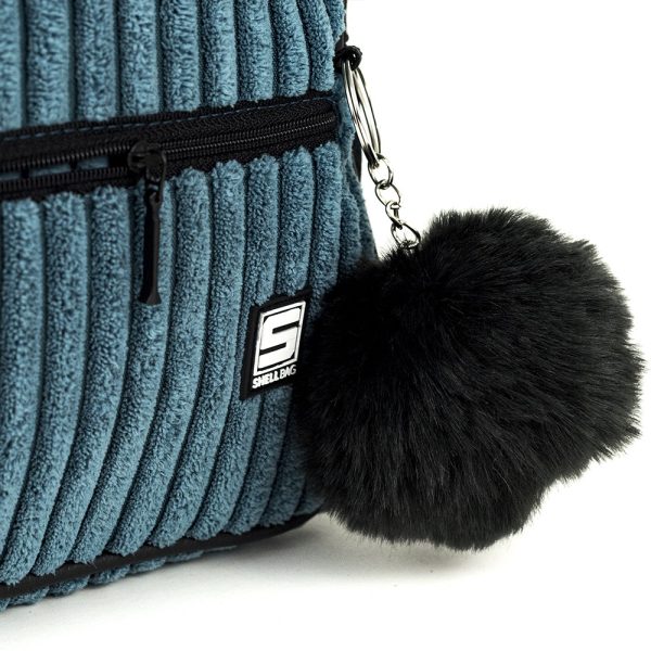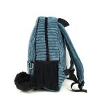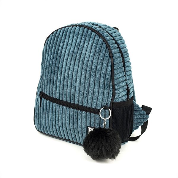 Mały sztruksowy plecak przedszkolny w kolorze morskim dedykowany jest zarówno dla chłopców jak i dziewczynek w wieku 2-8 lat.