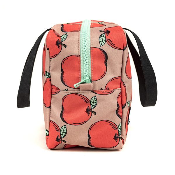 Czerwona torba śniadaniowa w jabłka to doskonałe rozwiązanie dla dzieci.