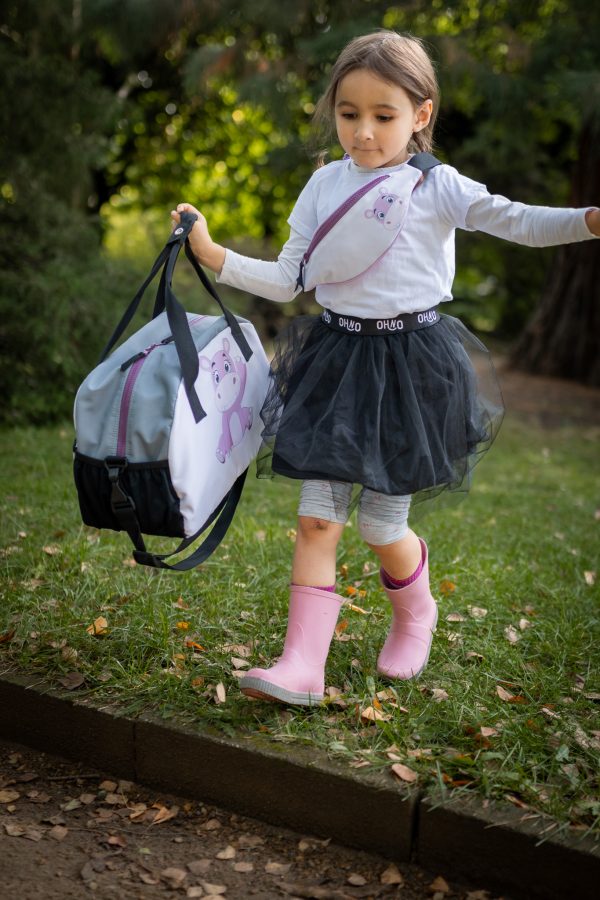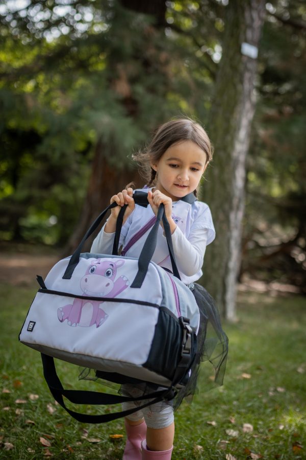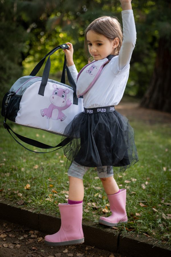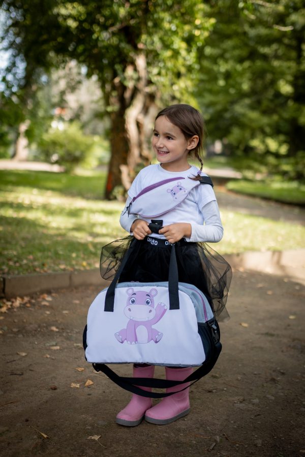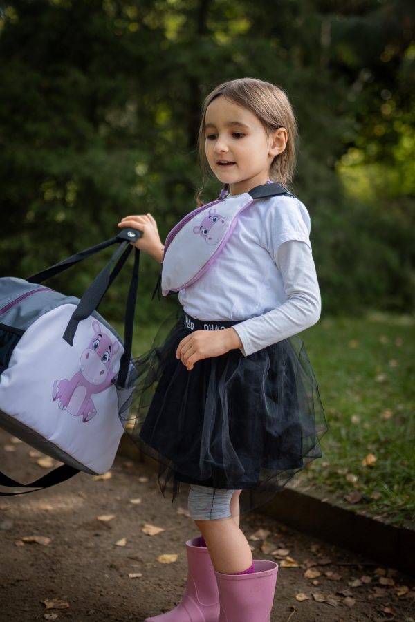 Wprowadź do życia Twojej małej podróżniczki radość z naszą sportową torbą dziecięcą z hipopotamem – funkcjonalną, modną i gotową na każdą przygodę!