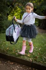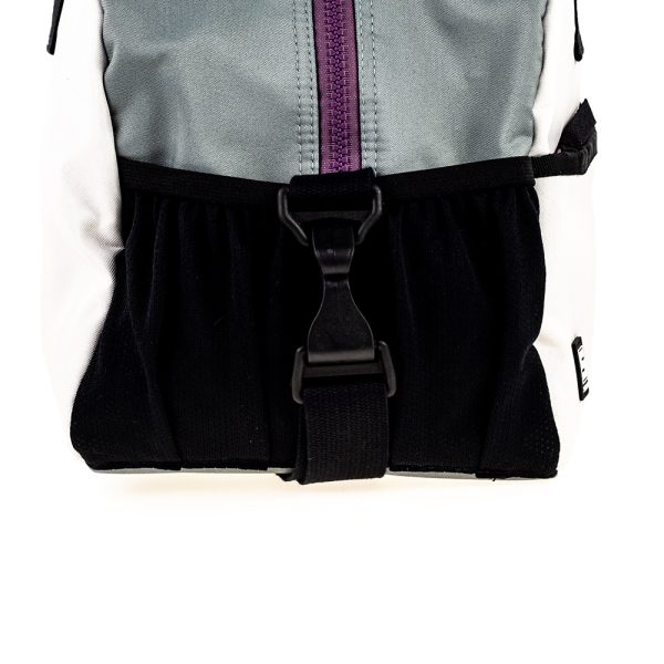 Wodoodporna powłoka zewnętrzna chroni zawartość przed deszczem czy przypadkowymi zalaniem, gwarantując spokojny sen rodziców i radość dzieci. Zewnętrzna kieszeń na zamek z przodu oraz kieszenie z siatki po bokach umożliwiają łatwe przechowywanie i umożliwiają dostęp do najważniejszych rzeczy. Szare kontrastowe wstawki i fioletowy zamek kostkowy nadają oryginalności.