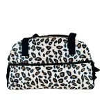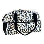 Torba sportowa w panterkowy print to doskonałe rozwiązanie na wyjazdy dla dziewczynek. Doskonale sprawdzi się dla nastolatek i mam — podczas wyjazdów czy zajęć dodatkowych. Jest bardzo pojemna; zmieści wszystko, co potrzebne podczas wyjścia na basen, podczas weekendowego wyjazdu do babci. Dzięki swojej elastyczności może być bagażem podręcznym podczas podróży samolotem. Sportowa torba w ponadczasowy wzór w panterkę może być używana już od najmłodszych lat – zmieści zapas pieluch, butelek czy odzieży na zmianę. Torba sportowa jest łatwa w utrzymaniu czystości – można prać ją w pralce wg instrukcji na metce. Użyto w niej materiał jakosci premium, wykonanie bardzo wysokiej jakości. Torba posiada jedną komorę główną zapinaną na solidny plastikowy zamek kostkowy, zewnętrzną kieszeń na podręczne rzeczy i po bokach 2 pojemne kieszenie z siatki. Dno czarne. Wewnątrz miejsce na podpis właściciela z wymienną etykietą. Torba sportowa posiada szeroki regulowany bawełniany pas i rączki z możliwością spięcia.