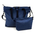 Torba uszyta z miękkiego, przyjemnego w dotyku weluru w kolorze granatowym.