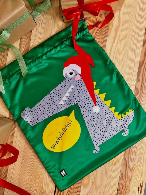 Worek na prezenty świąteczne z bestsellerowym krokodylem tym razem w świątecznym klimacie.