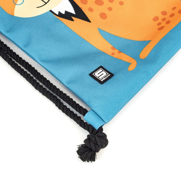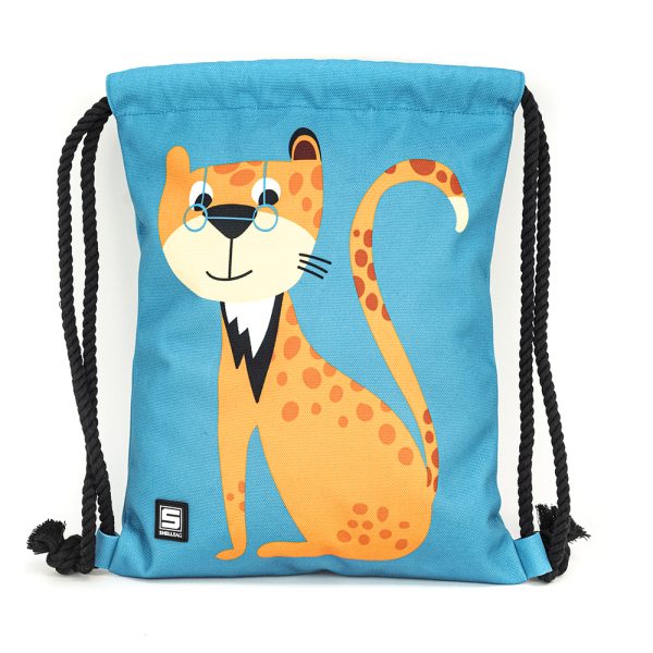 Dziecięcy worko plecak z wesołym tygrysem w okularach.