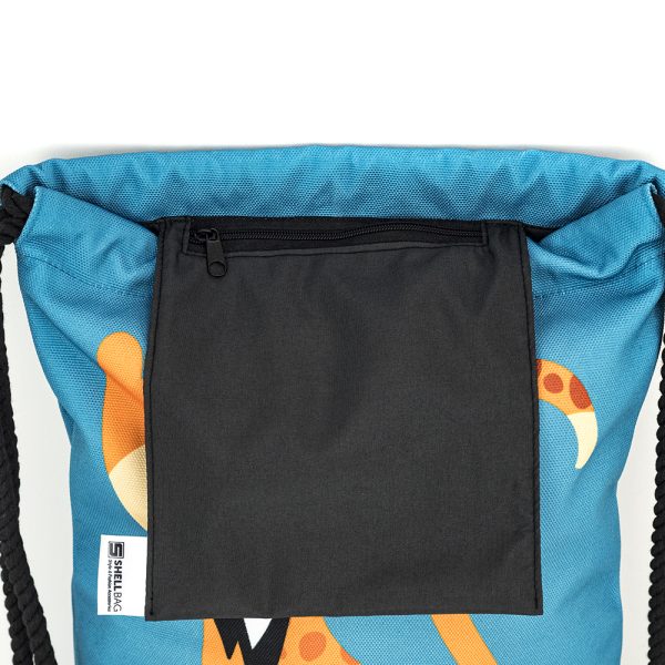 Worek uszyto z wodoodpornego materiału, wewnątrz bawełniana podszewka i kieszeń na zamek.