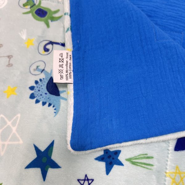 - Wierzchnia warstwa to miękki i puszysty materiał minky, który w połączeniu z bestsellerowym wzorem w dinozaury tworzy idealną całość dla małych fanów rakiet!