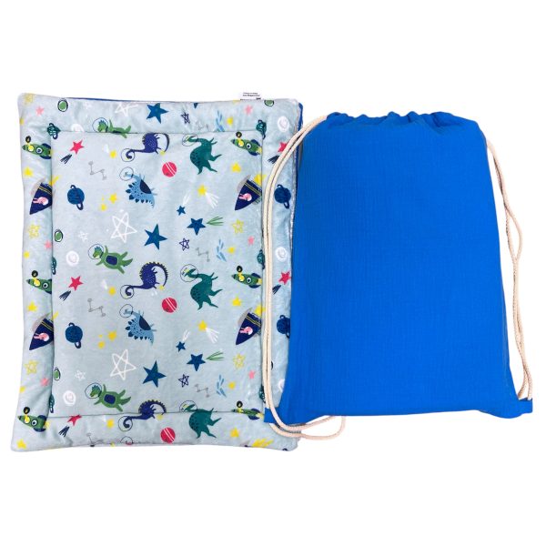 Zestaw Przedszkolaka – Poduszka, Kocyk i Worek w Bestsellerowym Wzorze Dinozaury w Kosmosie