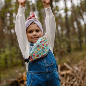 Nerka biodrowa dziecięca, młodzieżowa ze wzorem ptaka siedzącego na gałęzi.