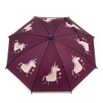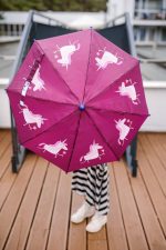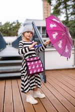 Jednorożce na różowym tle w odcieniu magenta umilą deszczowe spacery dziewczynkom.