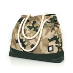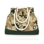 Pojemna torba na ramię lub do ręki z grubymi sznurami. Posiada wewnątrz mniejszą kieszeń na zamek. Wykonana z poliestrowego materiału, dolna część torby ze skóry ekologicznej. Wewnątrz podszewka, dno dodatkowo usztywnione dzięki czemu torba nie traci fasonu.