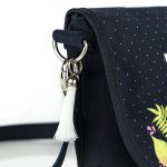 Posiada regulowany pasek, zapięcie na zatrzask magnetyczny oraz ozdobny pomponik nadający elegancji.